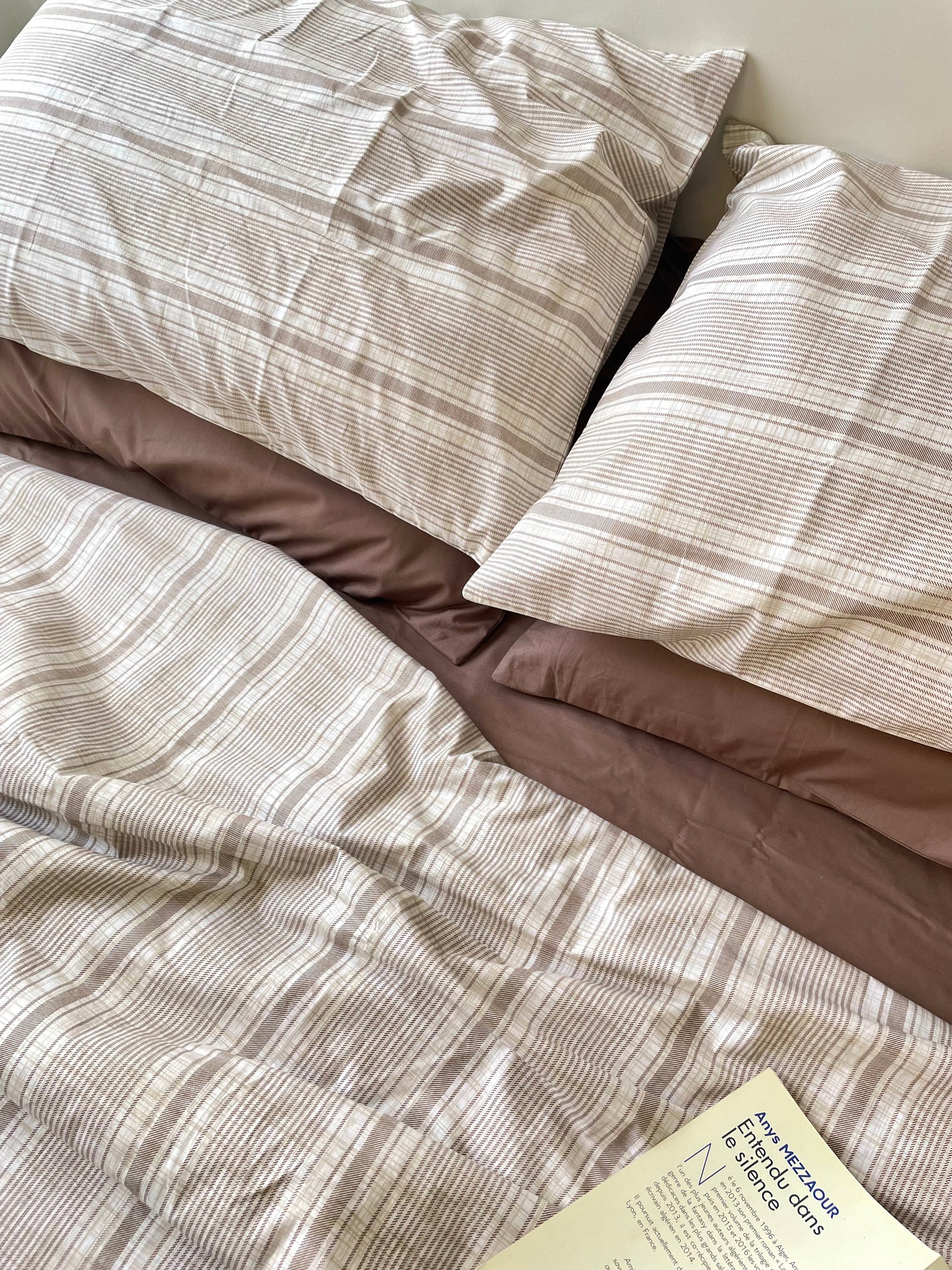 - Ensemble 3 pièces : drap ou housse de couette et 2 taies